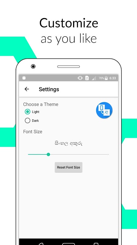 โทรศัพท์มือถือของคุณไม่สนับสนุนแบบอักษรสิงหล? สิ่งเดียวที่คุณเห็นเมื่อคุณได้รับข้อความในสิงหลเป็น▯▯▯▯▯? ไม่ต้องกังวลจาก app นี้คุณสามารถดูข้อความในสิงหล ไม่จำเป็นต้องขุดรากถอนโคนหรือติดตั้งแบบอักษรบนอุปกรณ์ของคุณเพียงแค่คัดลอกข้อความและคลิกที่ปุ่มลอย