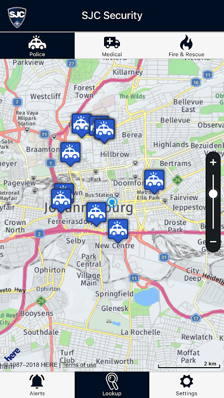SJC Security is a smartphone app that turns your mobile phone into the ultimate emergency system. It is linked to your Armed Response/ Security Company that sends real-time alerts requesting a range of emergency services.These emergency services include Armed Response/ nearest SAPS, Ambulance, nearest Fire Station