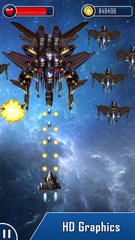 control your fighter, Travel through the bullets in space battle. and feel the bullets whizzing by.