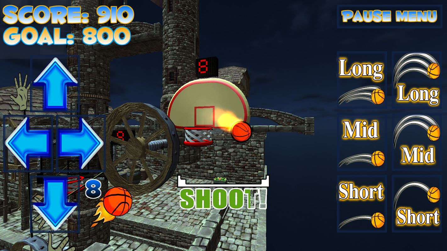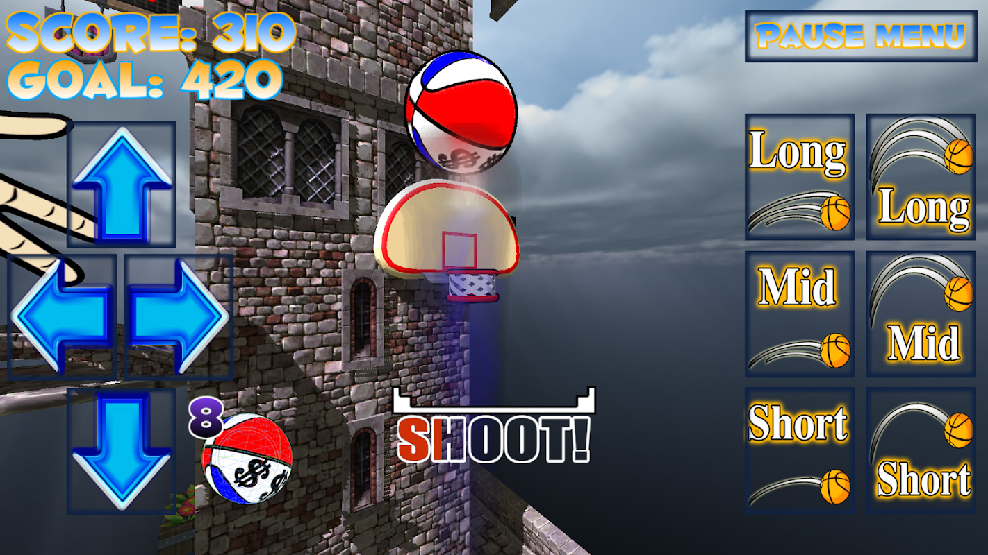 Press the buttons on the right side to shoot balls at different angles and speeds.