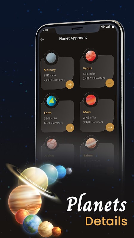 แอปพลิเคชันนี้สามารถเรียกได้ว่าเป็นแอปท้องฟ้าจำลองเนื่องจากให้รายละเอียดของดาวพุธ ดาวศุกร์ โลก ดาวอังคาร ดาวพฤหัสบดี ดาวเสาร์ ดาวยูเรนัส ดาวเนปจูน และดาวพลูโต