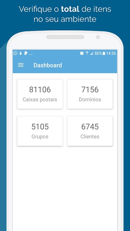 Com seu aplicativo terá o controle das suas caixas postais, domínios e grupos de e-mail na palma da sua mão.