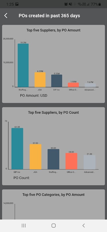 various timelines and dimensions (Supplier, PO Category, Cost Centre, Account,