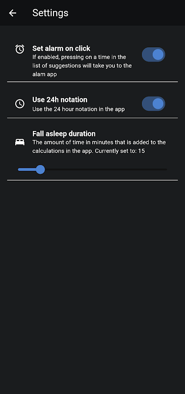 แอพคำนวณเวลาที่ดีที่สุดสำหรับคุณในการนอนหลับและเวลาที่ดีที่สุดสำหรับคุณที่จะตื่น! ขึ้นอยู่กับรอบการนอนหลับ 90 นาทีและคำนวณย้อนหลัง การตื่นนอนระหว่างรอบการนอนหลับจะทำให้คุณรู้สึกเหนื่อย แต่การตื่นหลังจากรอบการนอนหลับจะทำให้คุณรู้สึกสดชื่นมากขึ้น!