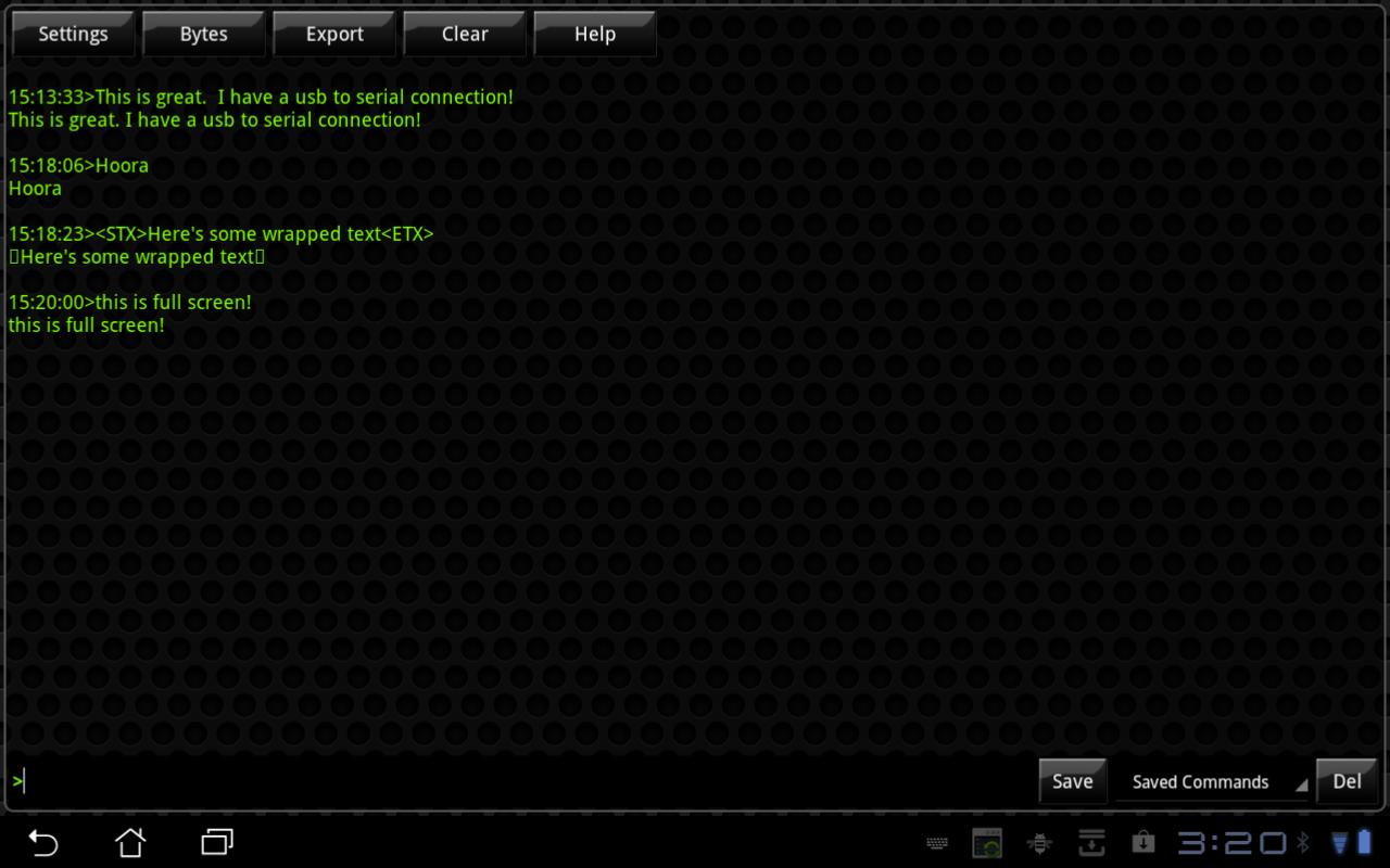 Slick USB 2 Serial Terminal allows you to use your tablet with your Prolific or FTDI based USB to Serial adapter and connect to your serial devices.