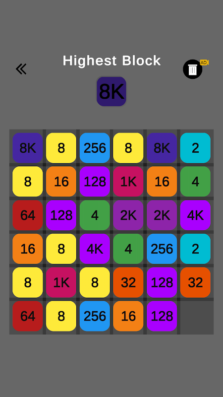 1] ความท้าทายที่ไม่มีที่สิ้นสุด: ในแต่ละครั้งที่รวมแผ่นกระเบื้อง มูลค่าของบล็อกของคุณจะเพิ่มขึ้นเป็นสองเท่า ทำให้เกมยากขึ้นเรื่อยๆ ขณะที่คุณพยายามอย่างหนักเพื่อให้ได้บล็อก 1BB ที่ยากจะไข