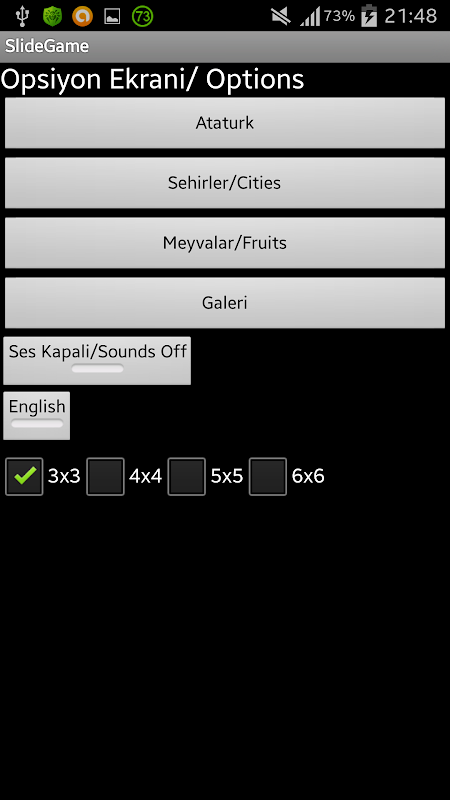 Images of Ataturk, Cities, Fruits have been divided into chunks of 3x3, 4x4, 5x5, 6x6.