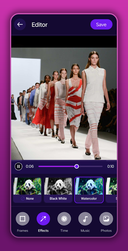 ✔ Customize your videos with transition effects, frames, and more