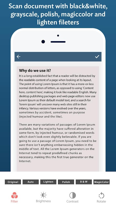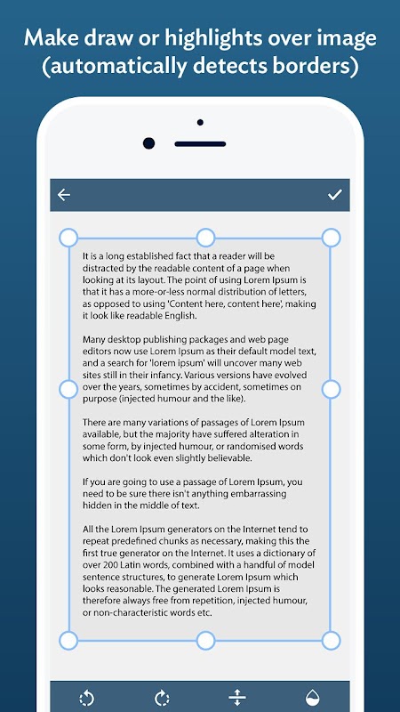 จับภาพสแกนที่คมชัดในไม่กี่วินาทีด้วยกล้องของคุณ ตรวจจับขอบเอกสารโดยอัตโนมัติและครอบตัดอัจฉริยะเพื่อลบพื้นหลังที่ไม่ต้องการเพื่อให้ได้งานที่ดูเป็นมืออาชีพ