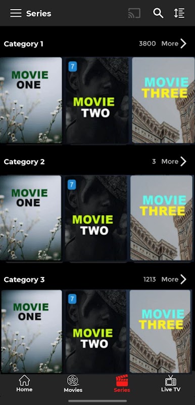 หนึ่งในคุณสมบัติที่ดีที่สุดของแอปนี้คือการจัดหมวดหมู่เนื้อหาออกเป็นกลุ่ม เช่น ภาพยนตร์ ซีรีส์ ถ่ายทอดสด ติดตามแยกกัน