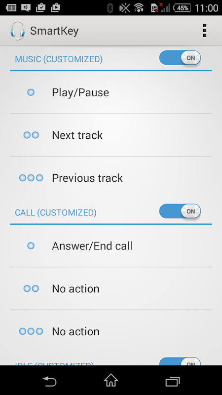 You can personalize the following behavior for music, call and idle mode: