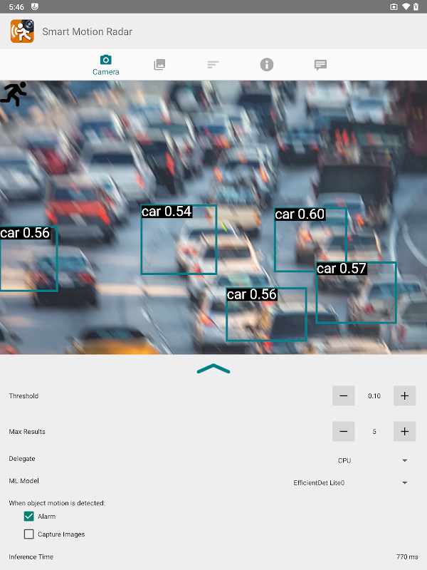 Smart Motion Radar เป็นแอปพลิเคชั่นอัจฉริยะที่ขับเคลื่อนด้วย AI และใช้งานง่าย ซึ่งตรวจจับการเคลื่อนไหวของหมวดหมู่วัตถุเฉพาะโดยอัตโนมัติด้วยกล้องของอุปกรณ์ Android