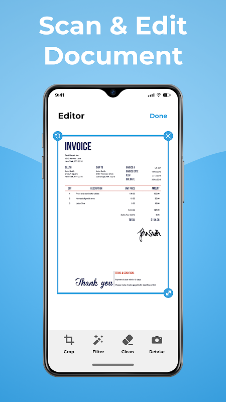 • สแกนเอกสารโดยใช้กล้องด้วยการแตะเพียงครั้งเดียว — รวดเร็ว สะอาด และแม่นยำทุกครั้ง