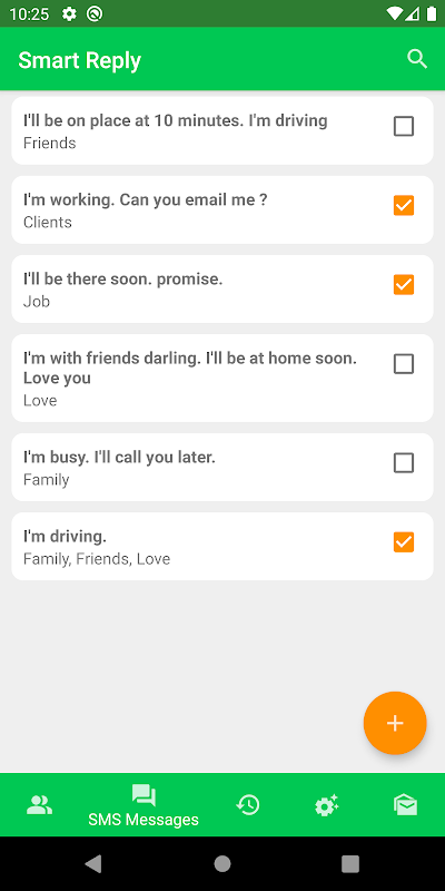 5. In SMS History you'll see sent messages. Call phone numbers / contacts directly form App!