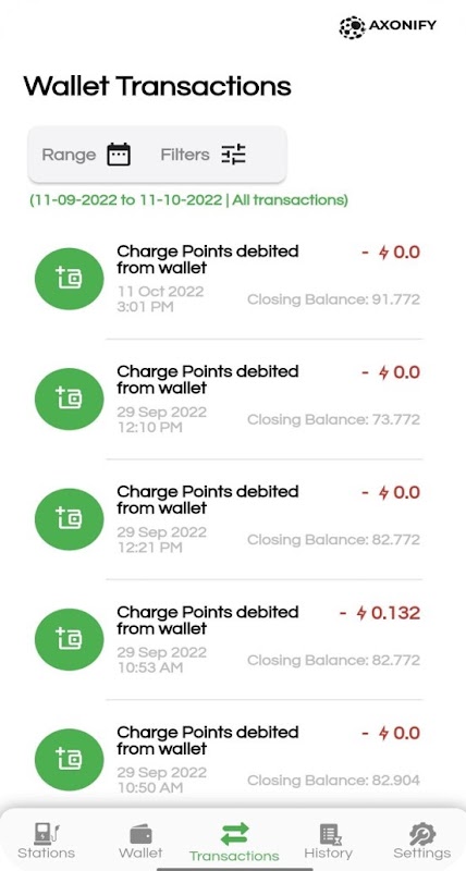 ผู้ใช้สามารถดูประวัติการชาร์จเก่าและยอดคงเหลือที่มีอยู่ได้อย่างง่ายดาย หากมี