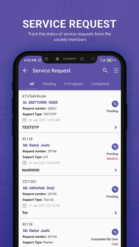 คำขอบริการ: ผู้จัดการสามารถรับคำขอบริการจากสมาชิกโซเชียลได้อย่างรวดเร็วด้วยแอพ Smart Town Admin Mobile ช่วยให้ผู้ดูแลระบบสามารถตอบสนองความต้องการของสมาชิกได้อย่างรวดเร็วในลักษณะที่ไม่ยุ่งยาก