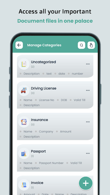 องค์กรที่ยืดหยุ่น: จัดระเบียบเอกสารของคุณเป็นหมวดหมู่ที่กำหนดไว้ล่วงหน้า เช่น ใบแจ้งหนี้ สัญญา ธนาคาร ส่วนบุคคล ตั๋ว ยา นามบัตร หนังสือ ใบแจ้งหนี้ ผลิตภัณฑ์ หรือสร้างหมวดหมู่ที่คุณกำหนดเองซึ่งปรับแต่งตามความต้องการของคุณ
