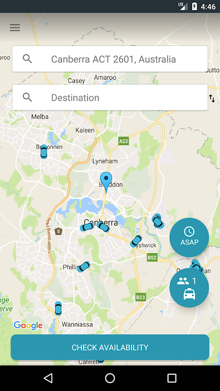 เมื่อคนขับยอมรับการจอง รถจะปรากฏบนแผนที่