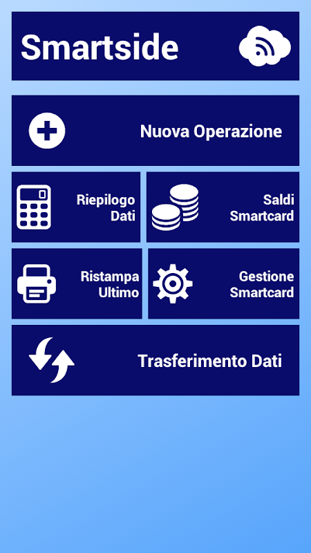 Smartside Mobile si compone di due applicazioni Smartside Mobile Esercente e Smartside Mobile Cliente, la prima viene utilizzata dall’esercente per il riconoscimento del cliente per l'assegnazione dei punti e la ricezione dei pagamenti.