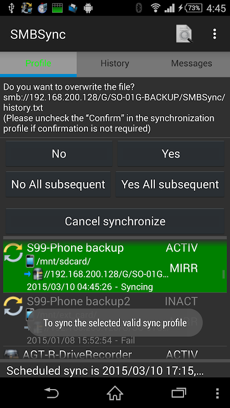 ** If you are using more than Android V5.0, please use SMBSync2. SMBSync2 is optimized for more than Android 5.0.