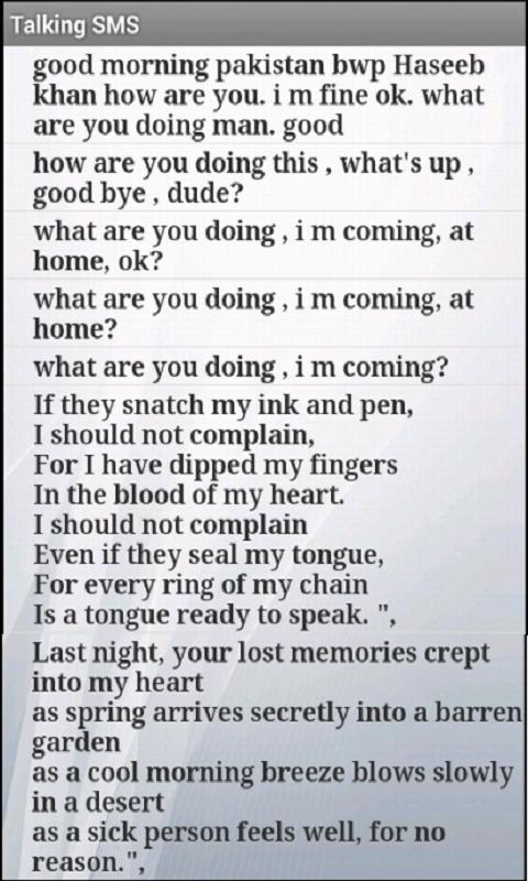 can speak every thing you write text.SMS Speaker is also get all SMS from inbox and then speak complete SMS.