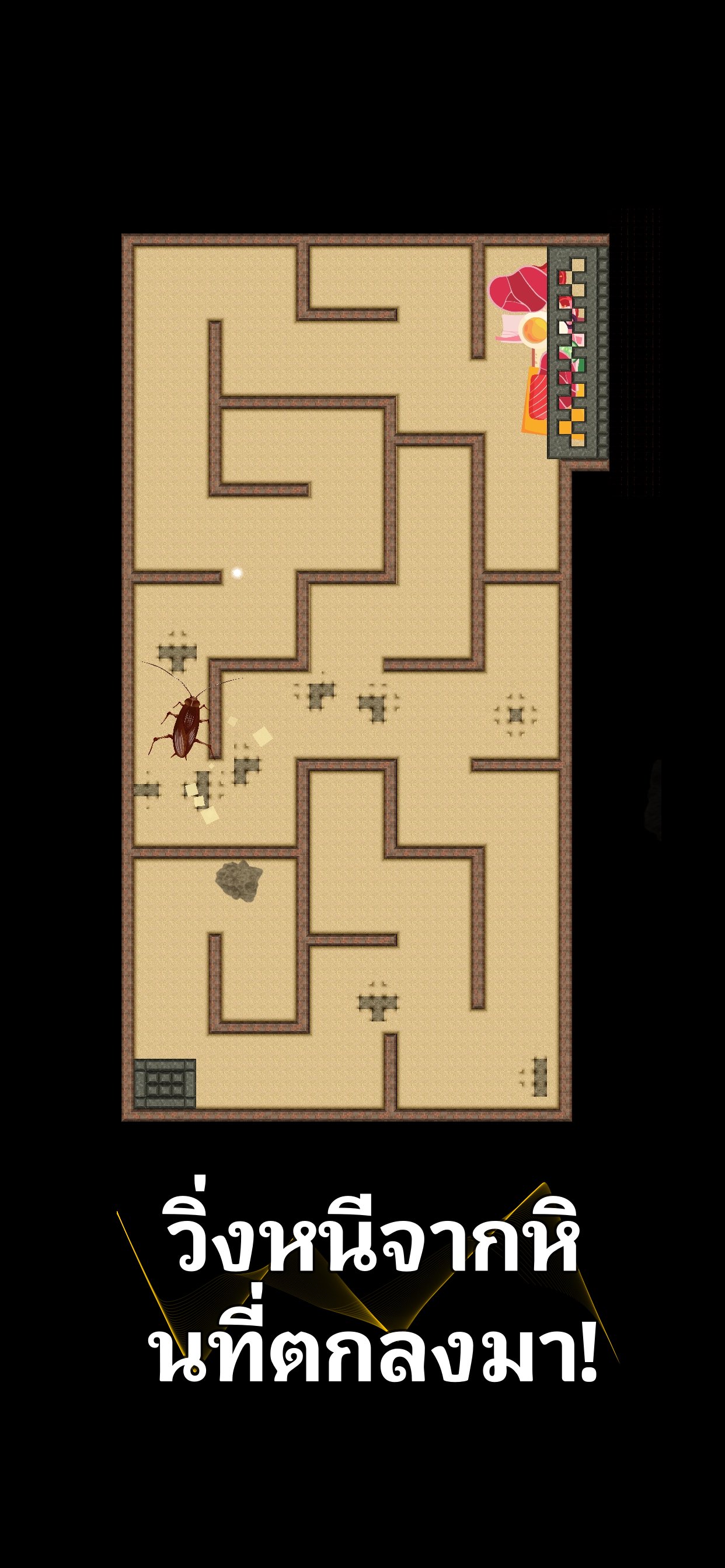 ช่วย Snackroach ญาติห่าง ๆ ของคุณ! ช่วยให้เจ้าตัวน้อยไปถึงประตูอาหาร ให้แตะน้อยที่สุด หลีกเลี่ยงศัตรู อุปสรรค และหินที่ตกลงมา!