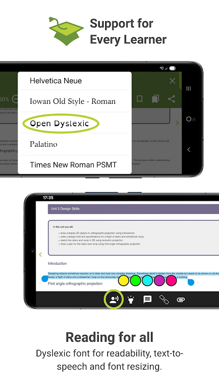 - เครื่องมือที่ครอบคลุมสำหรับผู้เรียนทุกคน: ฟอนต์สำหรับผู้มีปัญหาในการอ่านออกเสียง การแปลงข้อความเป็นเสียง และการปรับขนาดฟอนต์