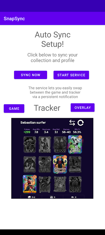 ให้ความสามารถในการอัปโหลดคอลเลกชันการ์ดและตัวแปรทั้งหมดของคุณ สร้างสำรับและประวัติการจับคู่ไปที่ https://snap.fan เพื่อเปิดใช้งานฟังก์ชันที่ได้รับการปรับปรุง อัปเดตล่าสุดเพื่อใช้งานได้กับ Android ทุกรุ่นและมีตัวติดตามแบบโอเวอร์เลย์ด้วย!