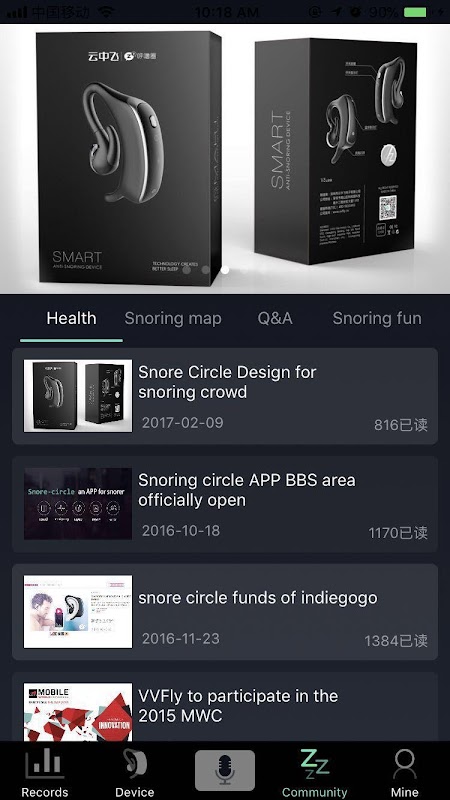 VVFLY SnoreCircle App is a visualized sleeping health application that can record the snoring decibels and frequency during sleep. Sleeping information can be analyzed by the intelligent algorithm. Thus we offer users simple and intuitive visualized snoring readout after synchronizing the device with our App. We hope to take great care of your sleep quietly every night.
