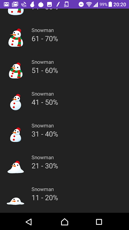 - Displaying the battery level. As the battery level reduce, the snowman will melt and become smaller.