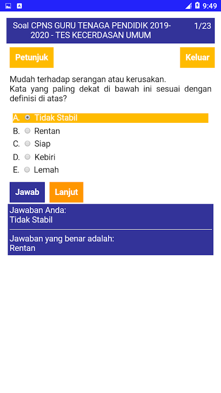 แอปพลิเคชันคำถาม CPNS สำหรับครูผู้สอนในปี 2020 ครอบคลุมเนื้อหาที่ปรากฏตามปกติและบ่อยครั้งในการทดสอบการเลือก CPNS ทุกปี