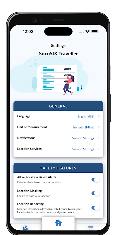 แอป SocoSIX ให้การแจ้งเตือนเหตุการณ์ตามตำแหน่ง การแจ้งเตือนเหตุฉุกเฉิน การส่งข้อความในแอป คุณสมบัติ SOS และการเข้าถึงศูนย์ตรวจสอบตลอด 24 ชั่วโมงทุกวันเพื่อความช่วยเหลือทางการแพทย์และความปลอดภัยในขณะที่คุณไม่อยู่บ้านในการเดินทางเพื่อองค์กร