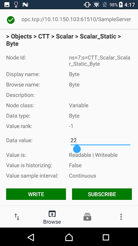 แอปนี้ได้รับการพัฒนาโดยใช้ SDK มาตรฐาน .net จาก Softing ซึ่งช่วยให้สามารถสร้างแอปพลิเคชัน opc ua รวมถึงแอปพลิเคชันสำหรับระบบปฏิบัติการ Android ได้