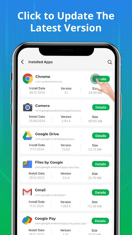 อัปเดตแอปโทรศัพท์ด้วยแอปตรวจสอบการอัปเดตซอฟต์แวร์ใหม่ เพื่อให้โทรศัพท์ของคุณทันสมัยอยู่เสมอ อัปเกรดซอฟต์แวร์สำหรับแอปทั้งหมดและติดตามเวอร์ชันใหม่ที่มีอยู่ใน Play Store แอปนี้ตรวจสอบการอัปเดตล่าสุดและทำให้แอปของคุณทันสมัยอยู่เสมอ นี่คือแอปอัปเดตซอฟต์แวร์ที่ดีที่สุดและเร็วที่สุดสำหรับแอป Android แอปตรวจสอบการอัปเดตแอปและเกมสำหรับคุณที่จะอัปเกรดแอป Android และซอฟต์แวร์ระบบปฏิบัติการของคุณ ซอฟต์แวร์ที่อัปเดตแล้วจะตรวจสอบการอัปเดตล่าสุดที่มีให้สำหรับสมาร์ทโฟนของคุณและส่งการแจ้งเตือนให้คุณ ด้วยการแตะเพียงครั้งเดียว ซอฟต์แวร์นี้จะอัปเดตแอปทั้งหมดสำหรับโทรศัพท์ Android รุ่นล่าสุด