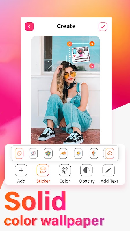 แอพนี้ยังให้คุณปรับแต่งวอลเปเปอร์ตามที่คุณเลือก คุณสามารถปรับแต่งวอลเปเปอร์ด้วยสี สติกเกอร์ หรือข้อความบนรูปภาพที่คุณเลือกจากแกลเลอรีหรือวอลเปเปอร์จาก Solid Color