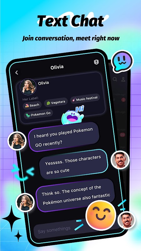 แบ่งปันความรู้สึกทางดนตรีและเรื่องราวที่ไม่ซ้ำใครในพื้นที่เสียงแบบไดนามิก SoMatch ช่วยให้คุณแสดงความสามารถ เข้าร่วมความท้าทายตามธีม และขยายการเข้าถึงโซเชียลของคุณผ่านการโต้ตอบด้วยเสียงแบบเรียลไทม์