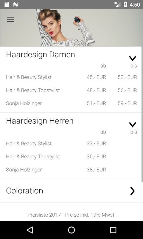 แอปพลิเคซอนญา Holzinger ถูกออกแบบมาสำหรับแฟน ๆ ทุกคนอุปถัมภ์และเพื่อน ๆ จาก La Biosthétiqueช่างทำผม Sonja Holzinger ในÖstringen