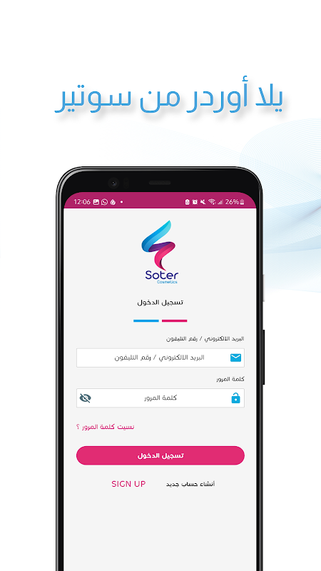 Soter เป็นบริษัทที่มีชื่อเสียงในด้านเวชภัณฑ์และเครื่องสำอาง สาขาอยู่ที่ Shubra - Cairo ให้บริการลูกค้าทั้งหมดทั่วสาธารณรัฐ บริษัท มีเป้าหมายเพื่ออำนวยความสะดวกในการเข้าถึงสำหรับลูกค้าผ่านเว็บไซต์และ Mobile Application เป็นรายแรกที่ขายส่งเครื่องสำอางและเวชภัณฑ์ผ่าน Application อิเล็กทรอนิกส์ จุดเด่น (ฟรี) ออกแบบให้มีเอกลักษณ์ ใช้งานง่าย สนุกกับการแสดงสินค้าง่าย ๆ พร้อมให้ข้อมูลทั้งหมดที่ คุณอาจต้องใช้ในระหว่างขั้นตอนการซื้อภายในนั้น .