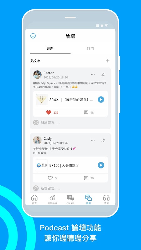 ◆ ฟังก์ชั่นโต้ตอบของฟอรั่ม Podcast ช่วยให้คุณฟังและแบ่งปัน