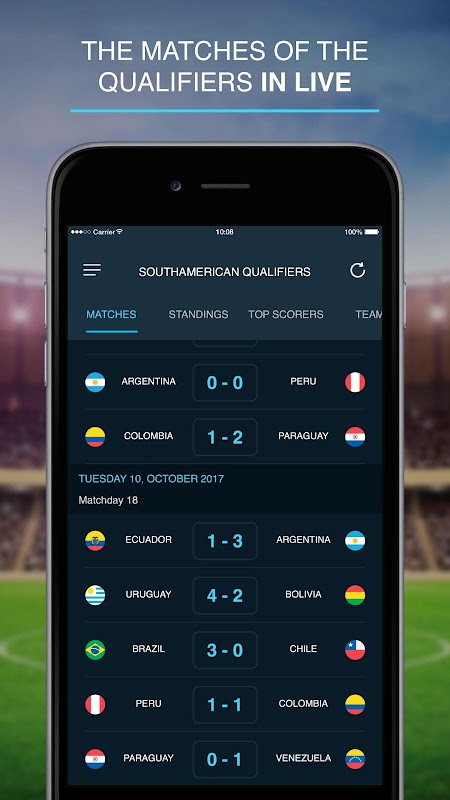 Scores and stats of the South American Qualifiers road to Russia 2018, in one place, teams, results, standings and more. With a totally new approach to live sports, follow your favorite team on your phone anytime, anywhere and any device.