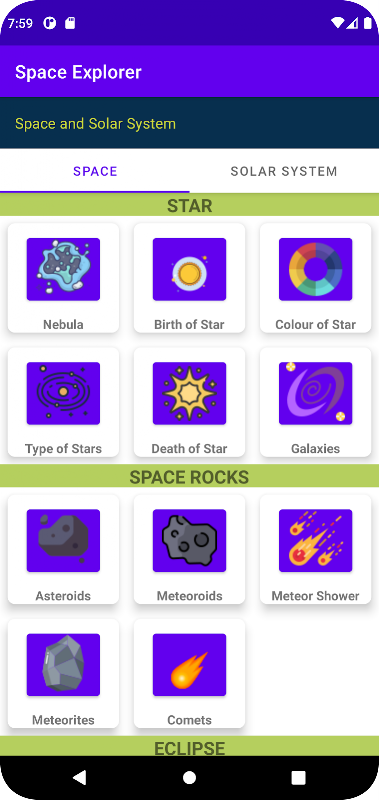 รู้จักลักษณะของดาวเคราะห์ที่ประกอบกันเป็นระบบสุริยะ เช่น ดวงอาทิตย์ ดาวพุธ ดาวศุกร์ ดาวอังคาร ดาวพฤหัสบดี ดาวเสาร์ ดาวยูเรนัส ดาวเนปจูน ดาวบริวารของโลก เซเรส ดาวพลูโต เฮาเมอา มาเกะมาเกะ และเอริส ตลอดจน ดาวเคราะห์แคระ Ceres, Pluto และ Eris เรียนรู้เกี่ยวกับดวงดาว เนบิวลา การกำเนิดของดาว การตายของดาว ประเภทของดาว สีของดาว และกาแล็กซี รู้เรื่องดาวหาง ฝนดาวตก อุกกาบาต และดาวเคราะห์น้อย เรียนรู้เกี่ยวกับดาวหาง รุ้งกินน้ำ พระอาทิตย์ทรงกลด แสงเหนือและแสงใต้ (ออโรร่า บอเรลลิส ออโรร่า ออสตราลิส) ทำความคุ้นเคยกับสุริยุปราคาและจันทรุปราคา รูปภาพของดวงดาว กาแล็กซี เนบิวลา สุริยุปราคา หินอวกาศ และอื่นๆ ไม่มีโฆษณาแบบรูปภาพ