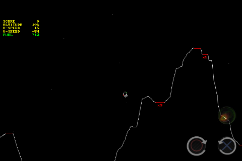 จะเป็นนักบินแลนเดอร์ผู้เล่นจะต้องต่อสู้กับแรงโน้มถ่วงโดยใช้คนงานขับดันเรือที่จะชะลอตัวเชื้อสายของตน ผู้เล่นที่ใช้คันเร่งสัดส่วนการปรับความแรงของการขับดัน ,. สองปุ่มให้ความสามารถในการหมุนตามเข็มนาฬิกาฝีมือและทวนเข็มนาฬิกา, วิธีการขับดันโดยการยิงเต็มแรงเป็นเวลาสั้น ๆ