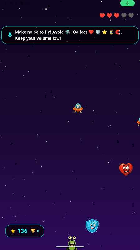 กระโดด หลบ และเคลื่อนผ่านอวกาศโดยใช้เสียงในเกมอาร์เคดเอเลี่ยนสุดสนุกนี้!