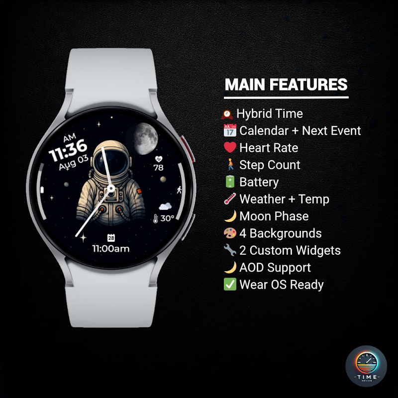 Space Vibes ยกระดับการติดตามประจำวันของคุณสู่วงโคจรด้วยหน้าปัดนาฬิกาแบบไฮบริดที่ผสมผสานความสง่างามแบบอนาล็อกและสิ่งจำเป็นแบบดิจิทัล ด้วยดีไซน์นักบินอวกาศตรงกลางและพื้นหลังจักรวาลที่เปลี่ยนได้สี่แบบ จึงรวมสไตล์และฟังก์ชันเข้าด้วยกันในแพ็คเกจที่ยอดเยี่ยม