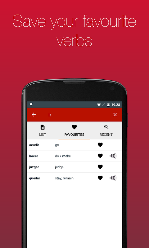 ตอนนี้พร้อมเสียง !! ไม่แน่ใจว่าออกเสียงคำกริยาอย่างไร ตอนนี้คุณสามารถได้ยินว่าคำกริยาทุกคำออกเสียงอย่างไร เพียงแตะที่ปุ่มถัดจากการผันคำกริยา หมายเหตุ: ฟังก์ชั่นนี้ต้องใช้การเชื่อมต่ออินเทอร์เน็ต
