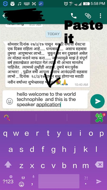 • Speech-To-Text app is simple and user friendly application. The text appears after you finish speaking, so it may take a minute getting used to. But once you get the regularity, you can copy-paste and share long emails and on other social media and many messaging application such as Watsapp, Hike, Facebook, Twitter,Instagram,etc.