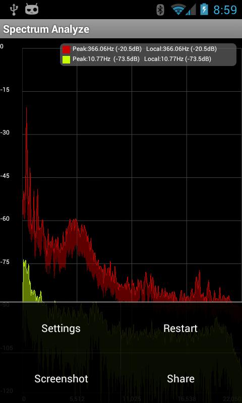 Spectrum วิเคราะห์ข้อมูลที่จะช่วยให้คุณสเปกตรัมเวลาจริงจากไมโครโฟนบนอุปกรณ์ Android ของคุณ