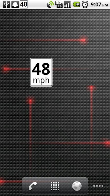 The Status Bar Speedometer gadget will display the current speed in the notification area/status bar of the phone. This enables the speedometer to be displayed regardless of which app is currently running. This is very useful when using along with a navigation app (such as Google Maps Navigation) that doesn’t display the current speed.