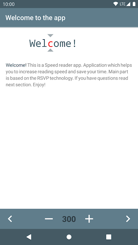 With the Speed reader, people can start reading from a standard speed - 300 words per minute. And gradually increase to 1000 words per minute or more.
