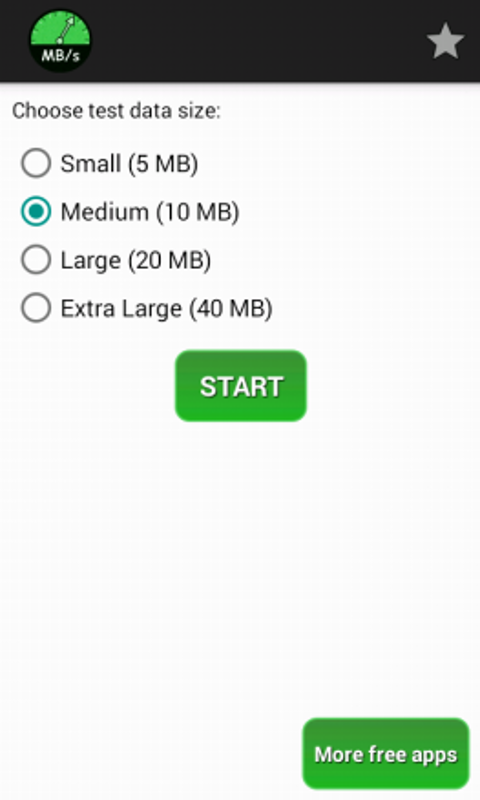 การทดสอบความเร็วเป็นแอปพลิเคชั่นที่ง่ายและมีประโยชน์มากสำหรับตรวจสอบความเร็วในการดาวน์โหลดการเชื่อมต่ออินเทอร์เน็ตของคุณ ผลการทดสอบขึ้นอยู่กับการดาวน์โหลดข้อมูลในขนาดที่เลือก ไม่ต้องกังวลข้อมูลที่ดาวน์โหลดจะไม่ถูกจัดเก็บในที่จัดเก็บข้อมูลมือถือ มีขนาดข้อมูลทดสอบ 4 ตัวเลือก: